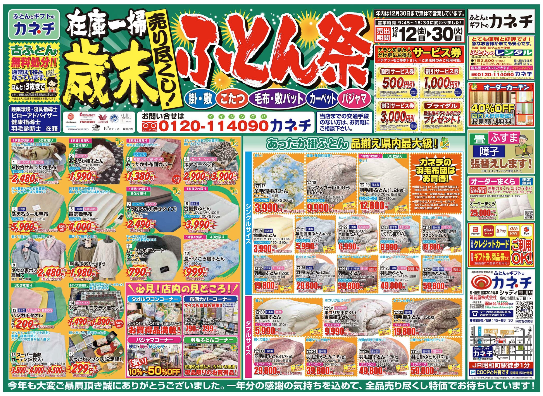 年末年始のレンタル布団のお知らせ。