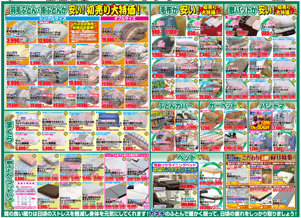 枕・布団・マットレスなどカネチおすすめの商品をご紹介します。